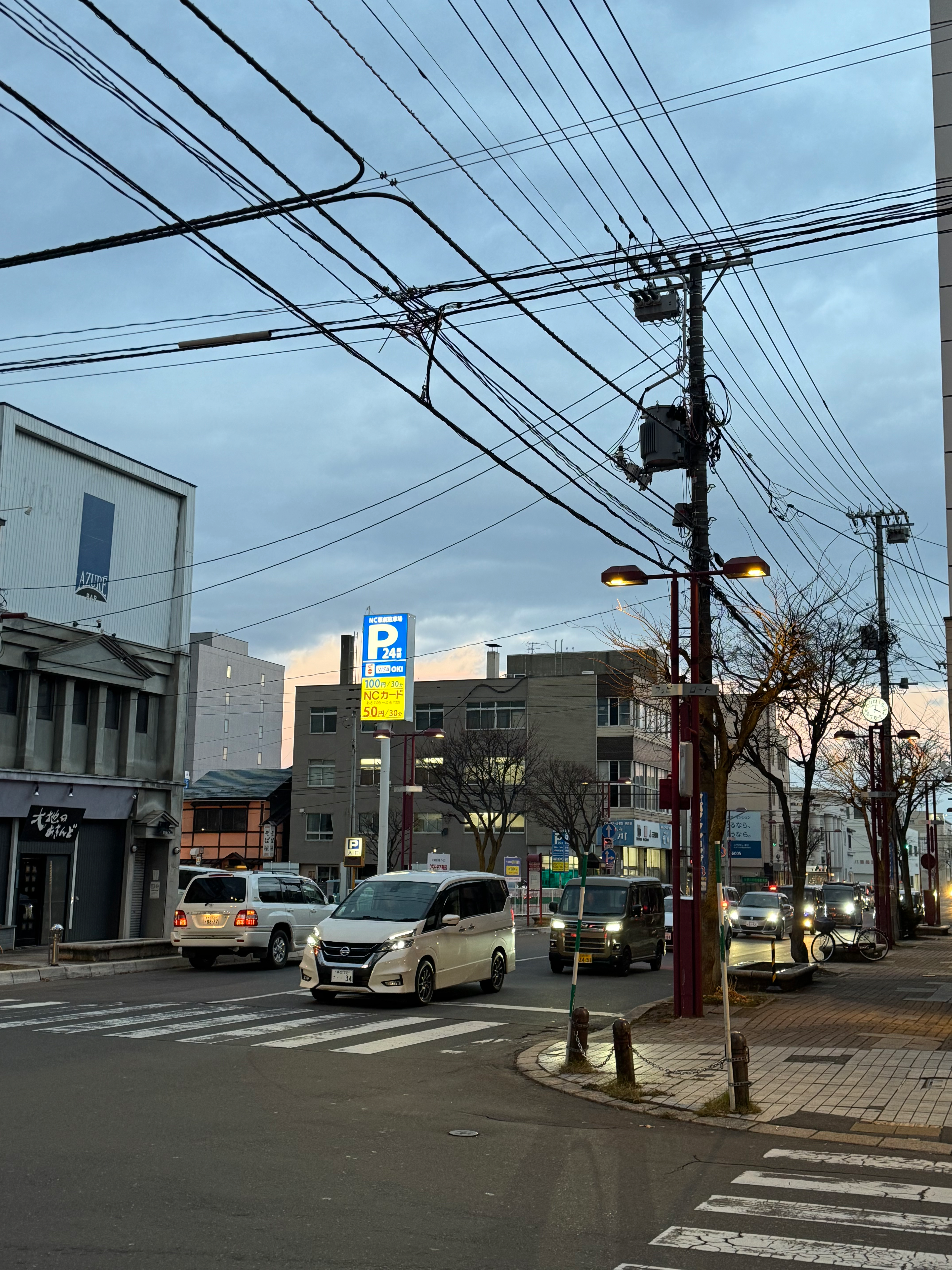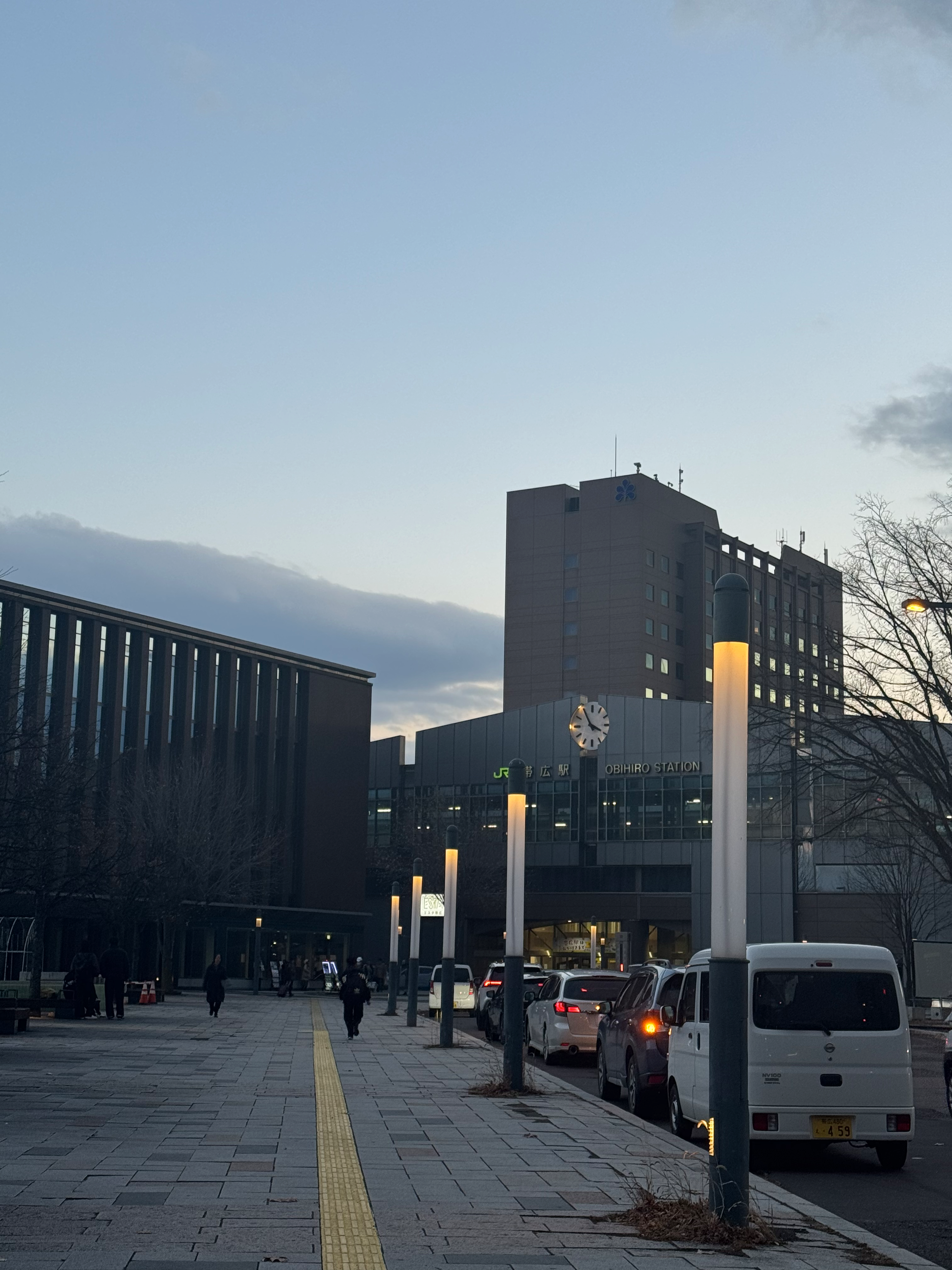 분명 난 한 3시 반쯤에 오비히로에 도착했는데, 해가 거의 다 지고 있었다. 마치 저녁에 도착한 느낌이 들어서, 비행기 3시간 타고왔을 뿐인데 곧 자야할 것 같고 그런 생각이 들었다. 4일정도 있으면서 느낀건데 여기는 초겨울이여도 한 4시정도 되면 한국의 10시정도의 어두움이 몰려오는 것 같았다. 여기 사람들은 그래서 아… 뭔가 일찍 자고 일찍 일어나는 그런 삶을 살지 않을까 싶었는데, 현지인 얘기 들어보니까 다들 늦게까지 술마셔서 그러진 않는다고 하더라.