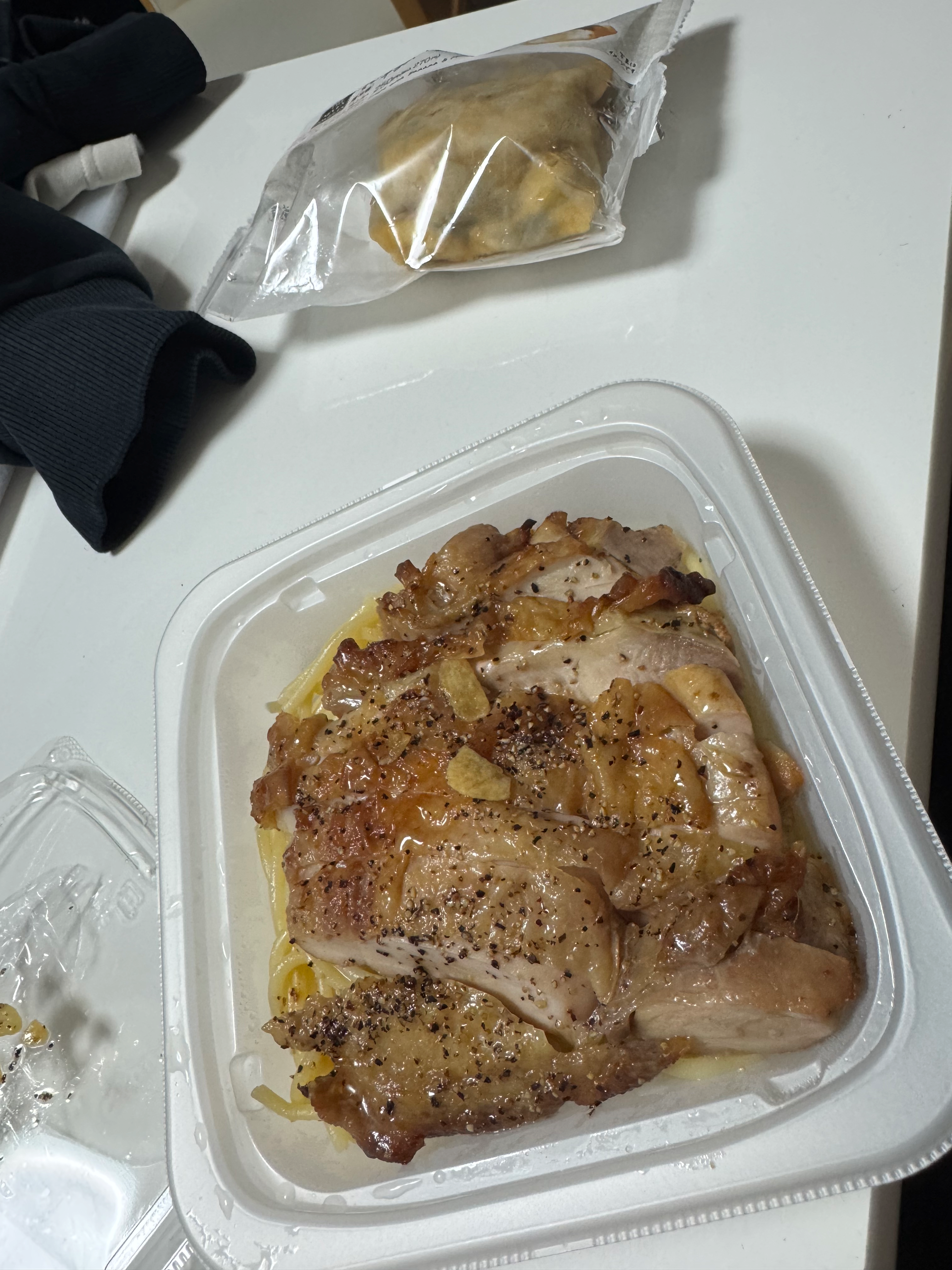 편의점에서 알리오올리오에 훈제 닭다리살을 올린걸 팔고 있길래 바나나 크레페랑 같이 사서 와서 먹었는데 진짜 이거 한국에서 팔면 좋겠다. (3번째 사진임) 엄청 맛있었음.